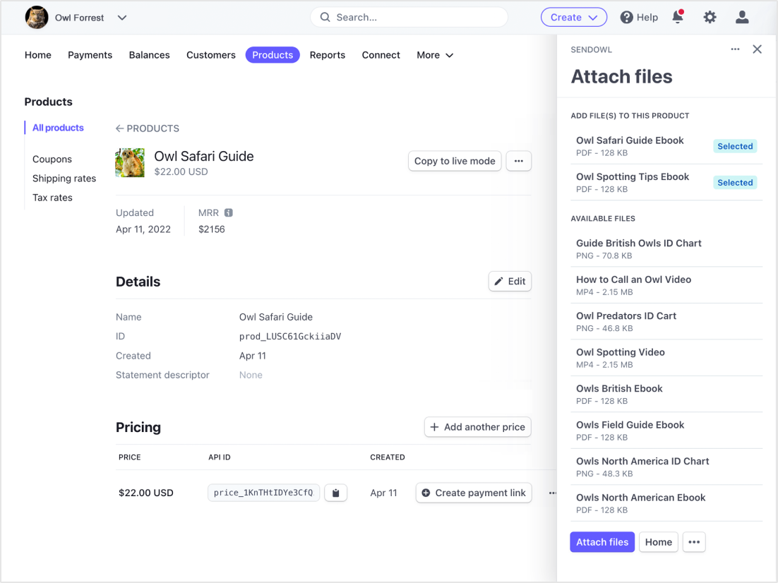 Your files and products, together in Stripe.