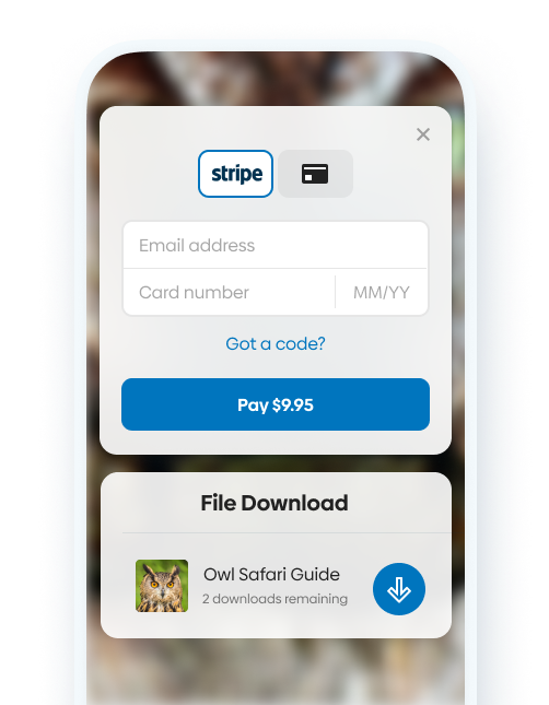 Upload your digital files to SendOwl, connect them to your Stripe products, and set download limits or expiration times. No more juggling multiple platforms.